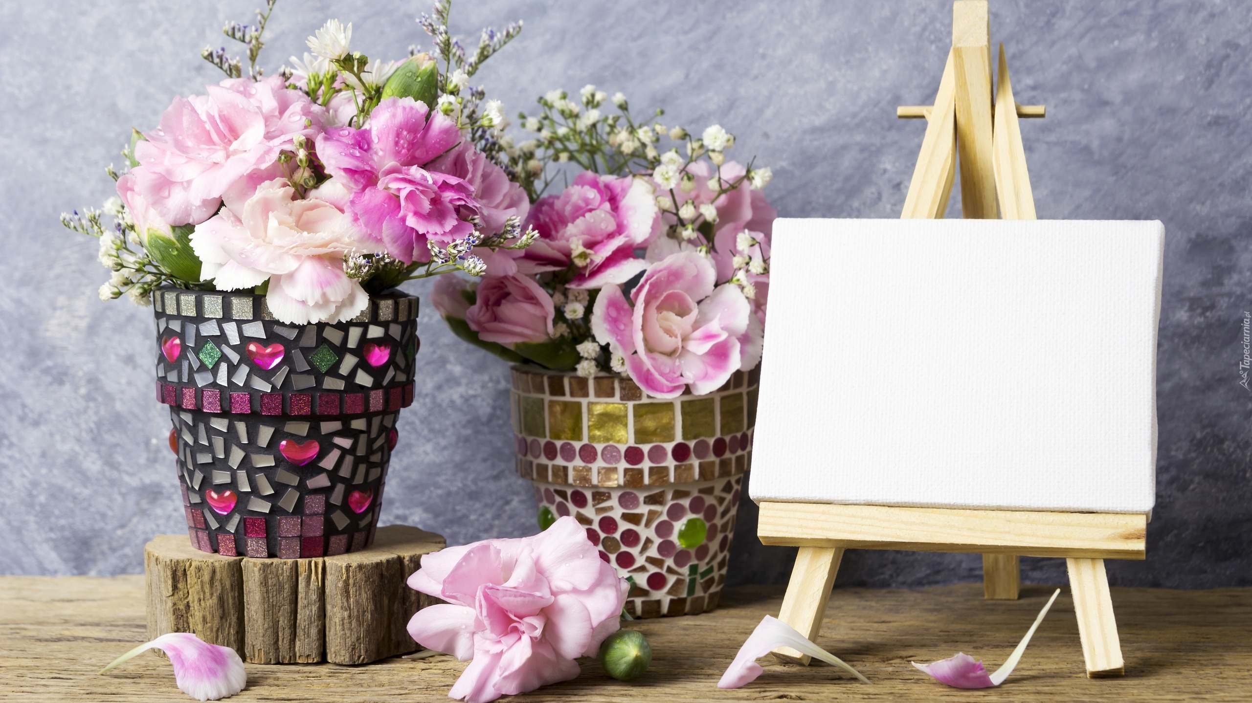 Edytor tapety: Goździki Szabo w dekoracyjnych doniczkach