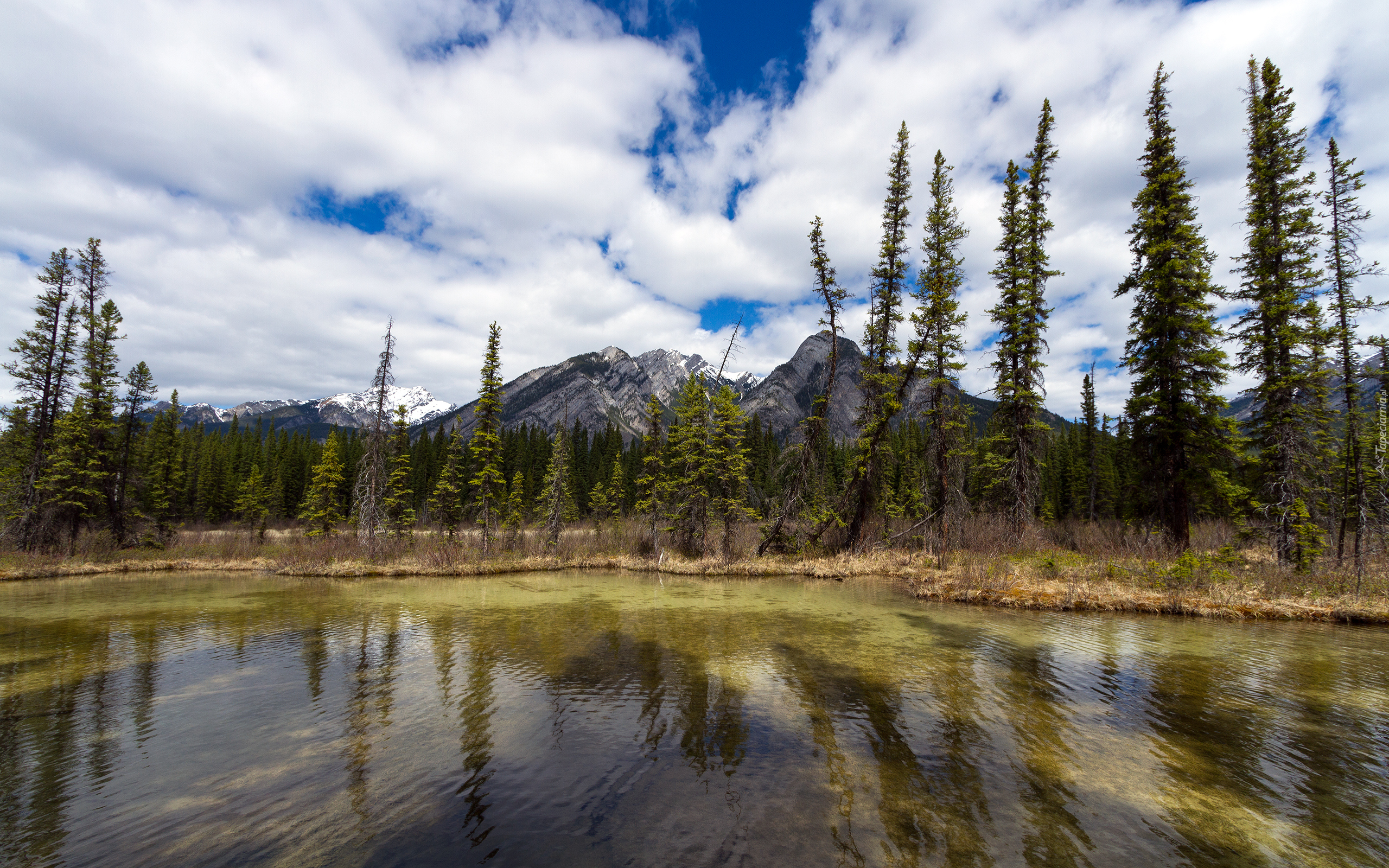Edytor tapety: Widok z brzegu jeziora na szczyty gór