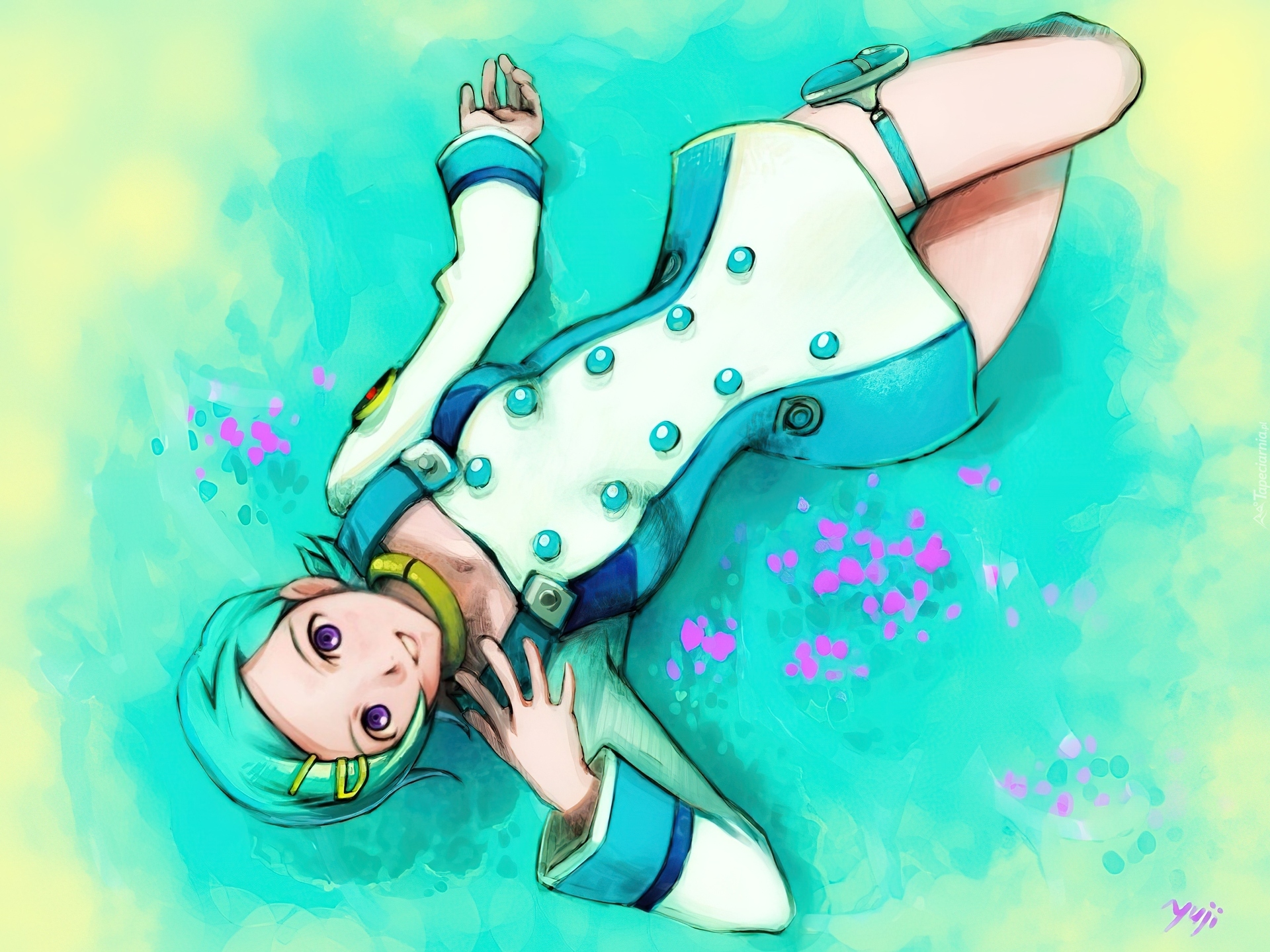 Edytor tapety: Eureka 7, dziewczyna, rozmarzona, kwiaty
