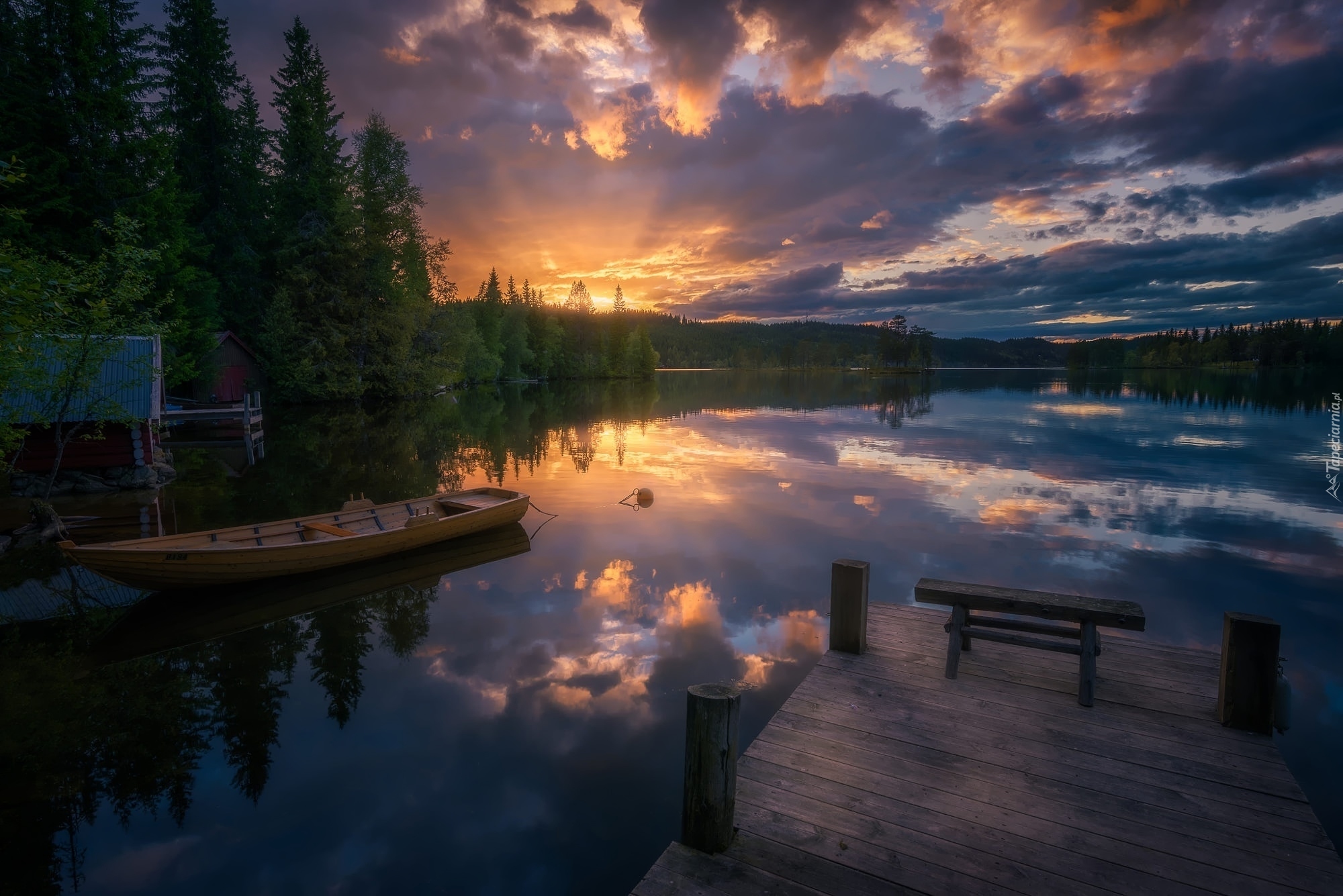 Edytor tapety: Łódka na jeziorze Oyangen w norweskiej gminie Ringerike