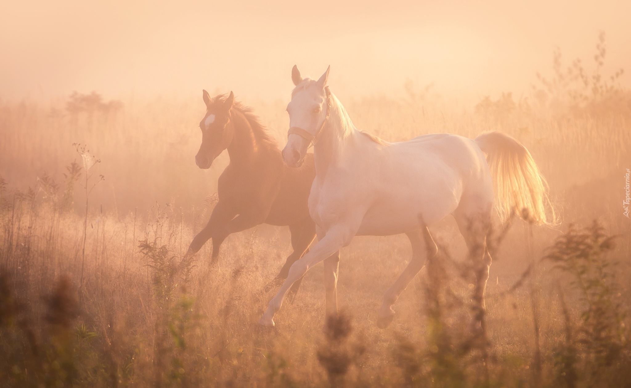 Edytor tapety: Konie we mgle