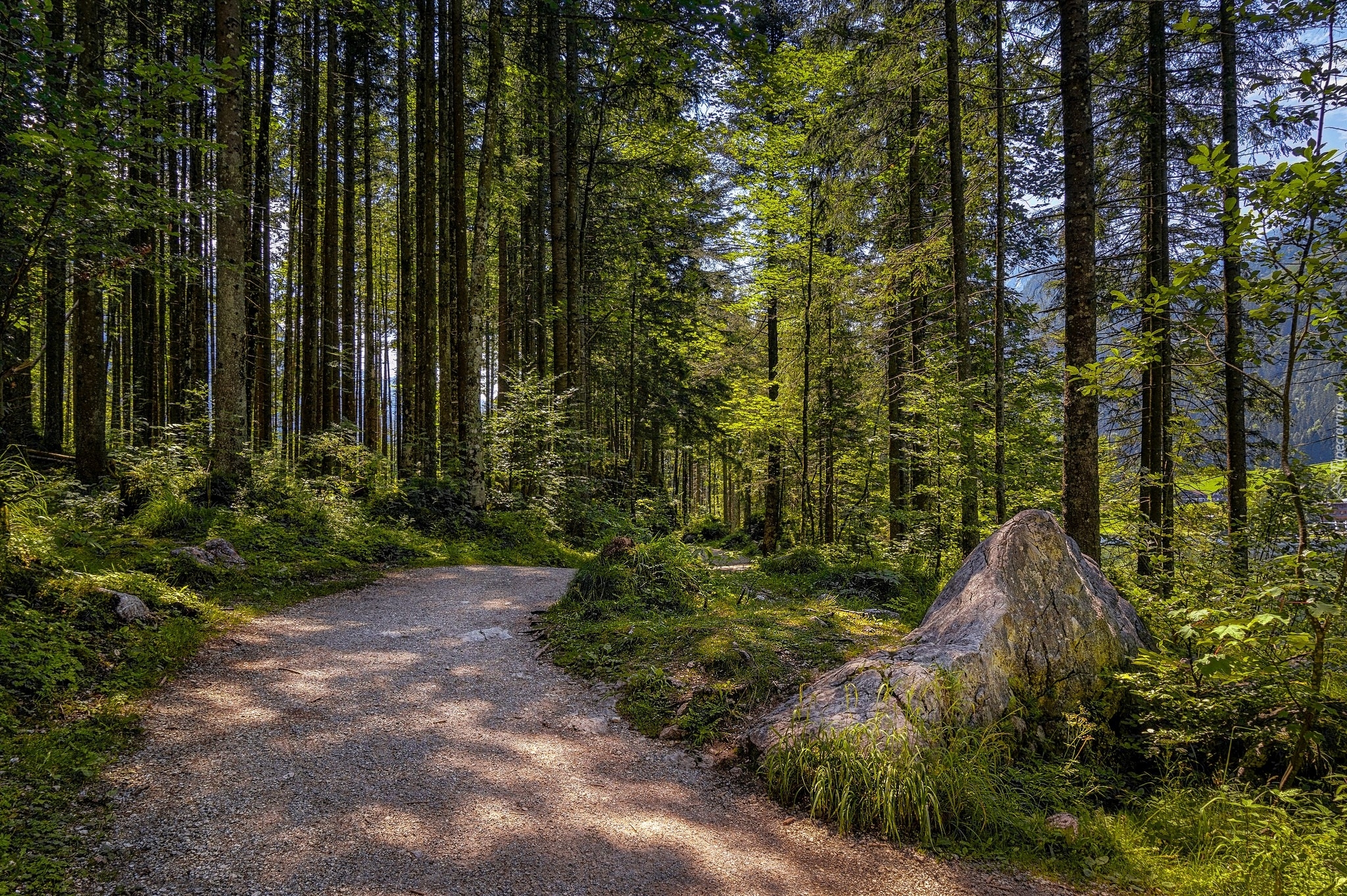 Edytor tapety: Kamień przy leśnej drodze