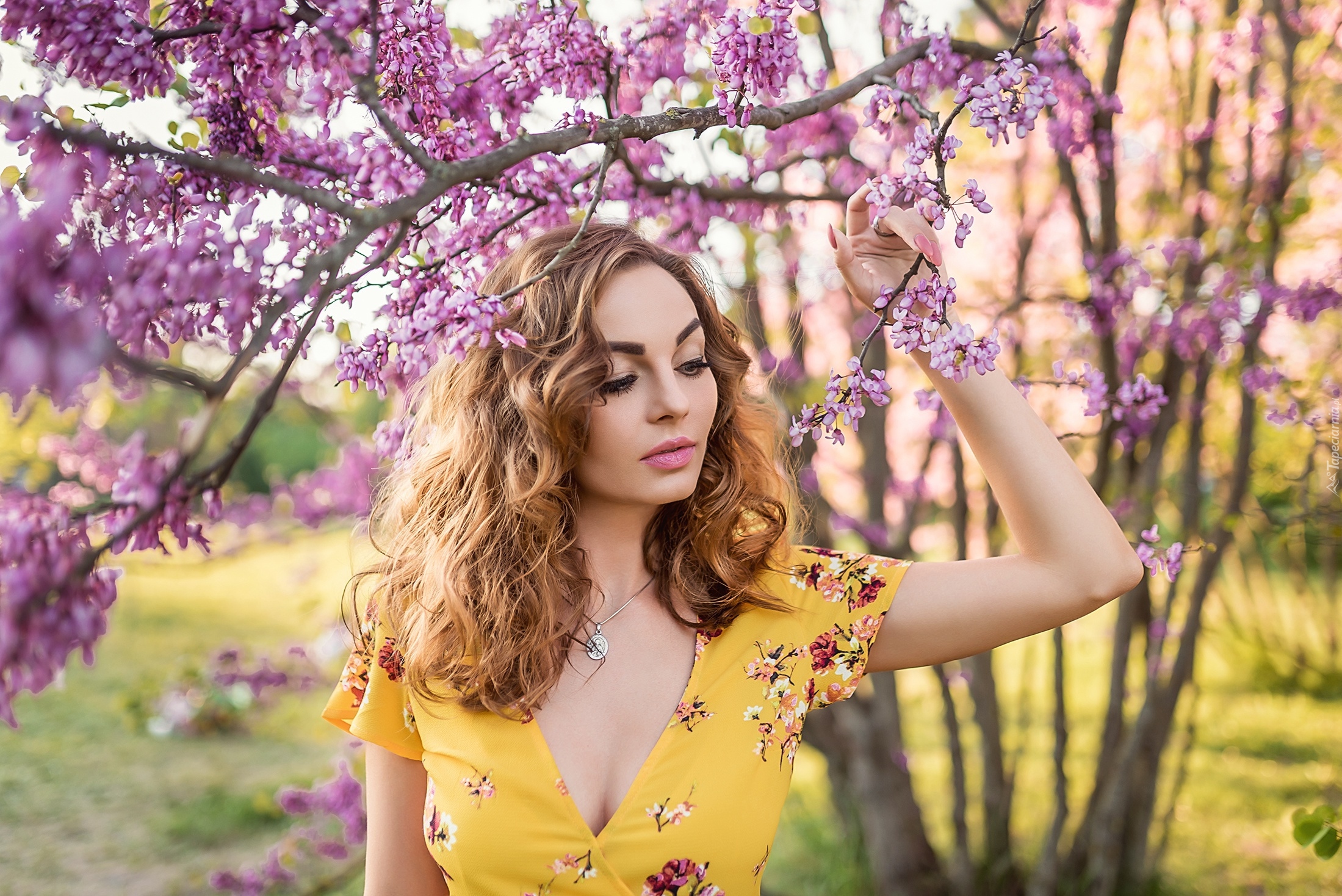 Edytor tapety: Dziewczyna pod kwitnącym drzewem
