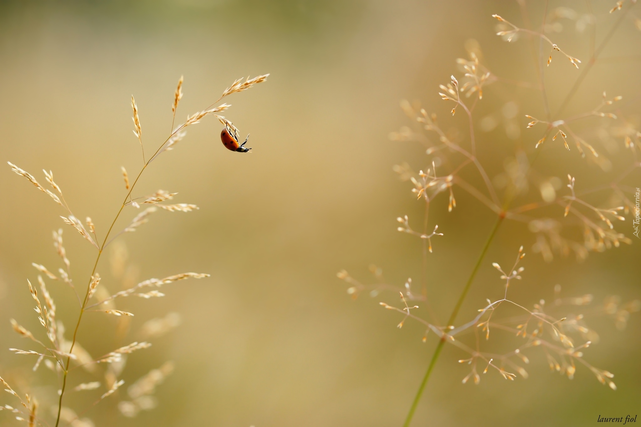 Edytor tapety: Biedronka na źdźbłach trawy