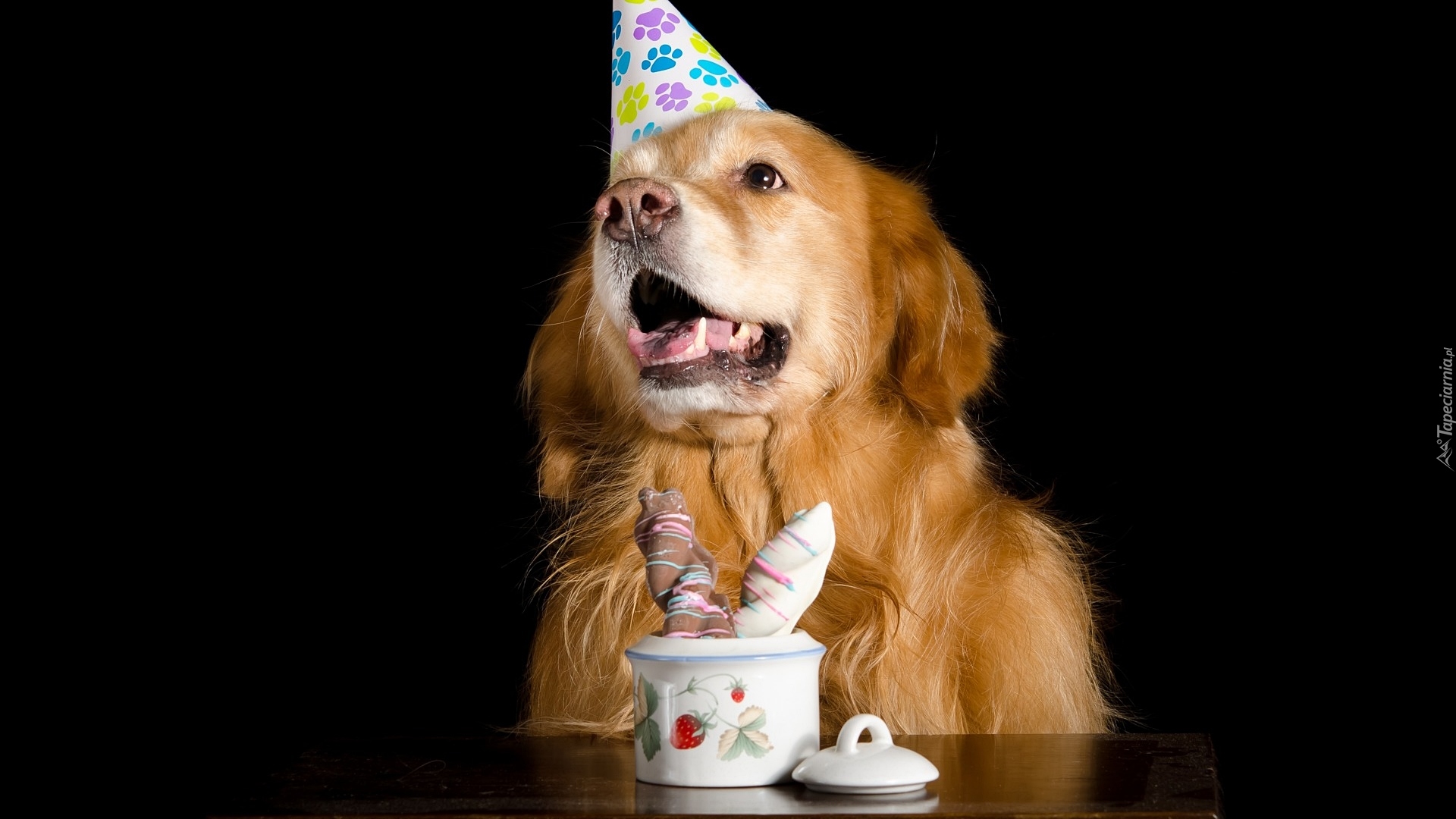 Edytor tapety: Golden retriever na urodzinach