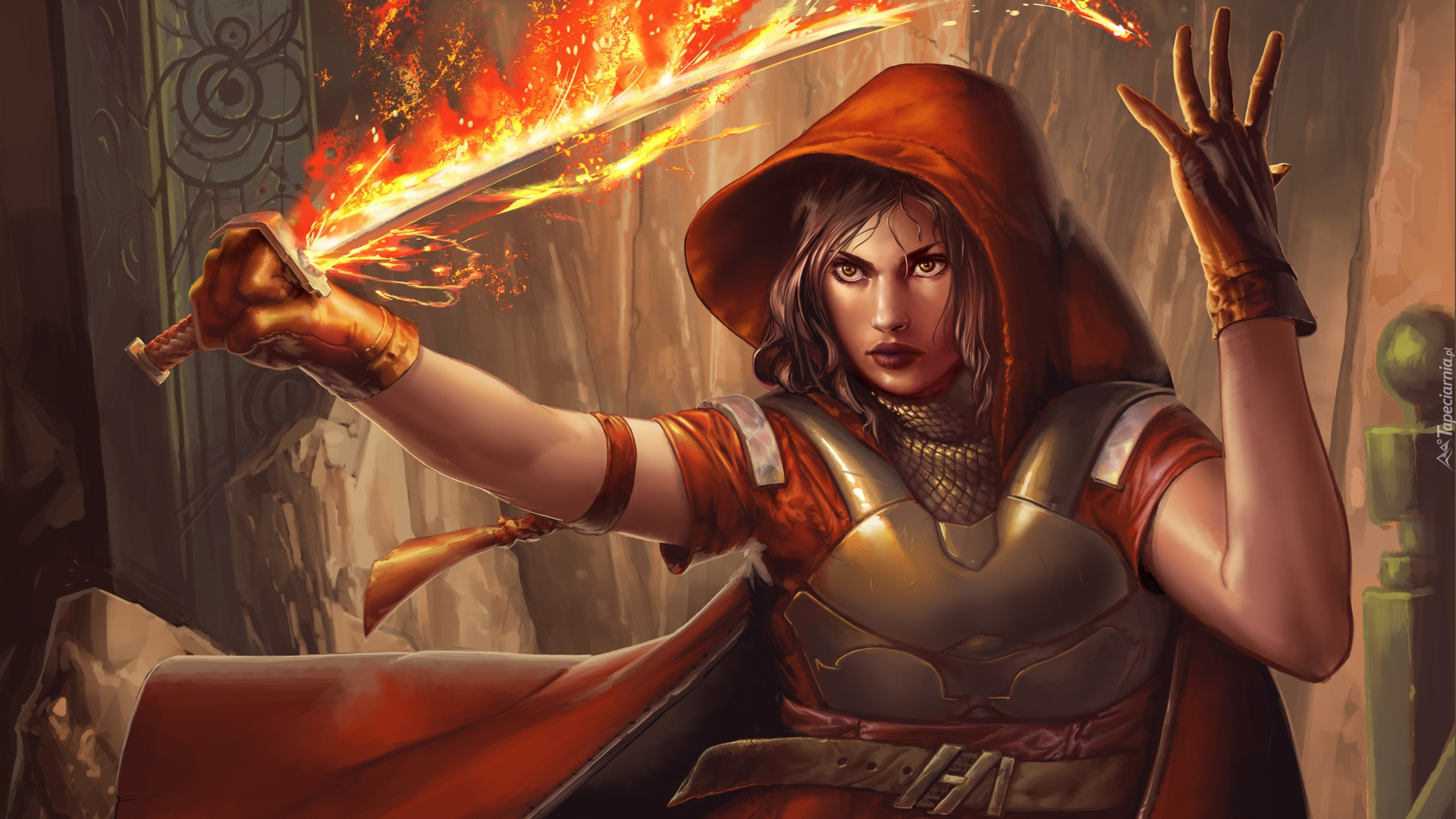 Edytor tapety: Wojowniczka z ognistym mieczem