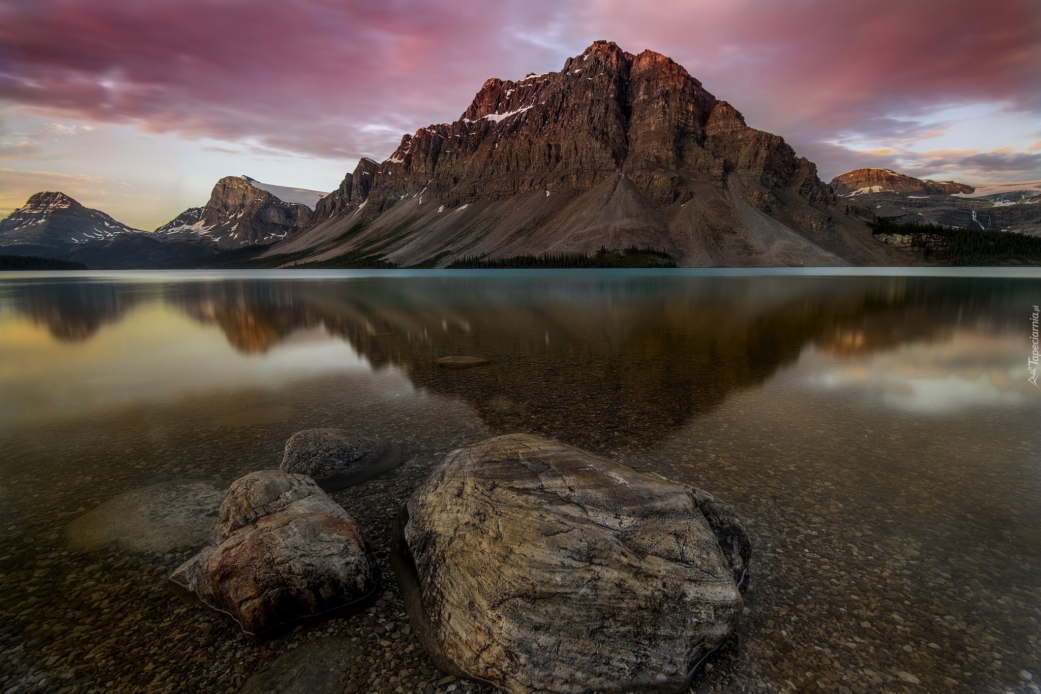 Edytor tapety: Jezioro Bow Lake u podnóża góry Crowfoot Mountain