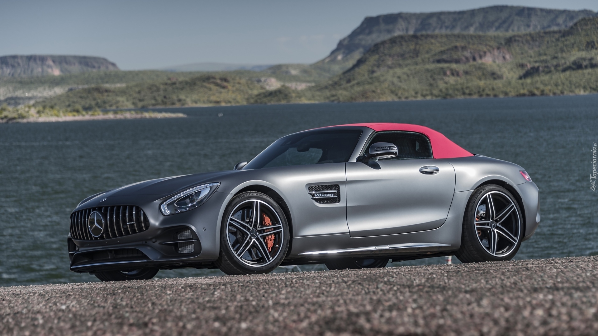 Edytor tapety: Mercedes-AMG GT Roadster przy jeziorze