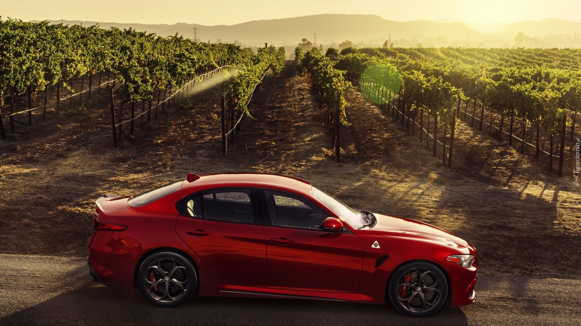 Edytor tapety: Alfa Romeo Giulia na tle winnicy