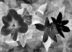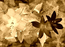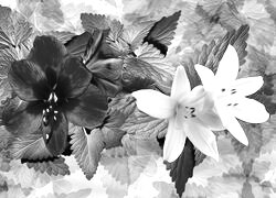 Edytor tapety: Czerwone i żółte lilie na listkach mięty