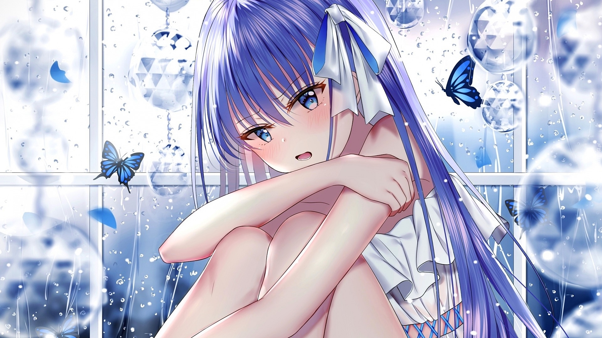 Edytor tapety: Dziewczyna o niebieskich włosach i oczach