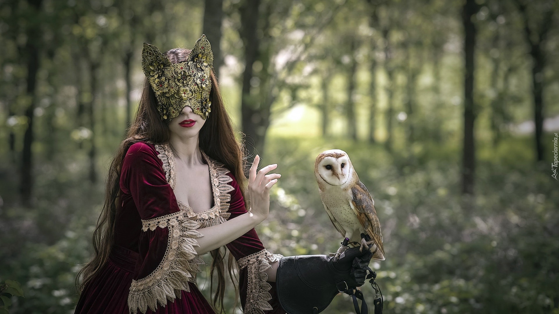Edytor tapety: Dziewczyna w masce z płomykówką