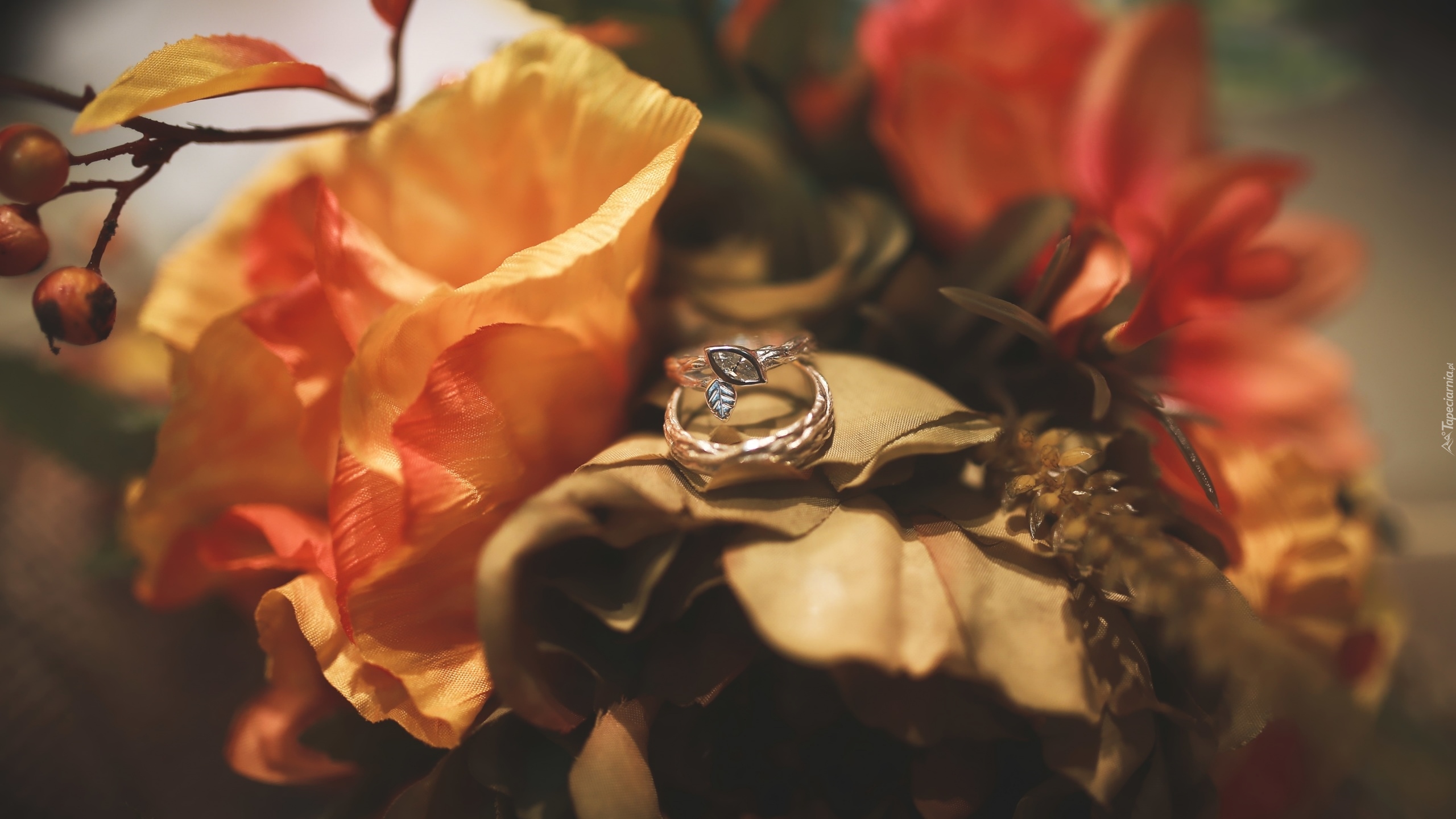 Edytor tapety: Pierścionek na sztucznych kwiatach