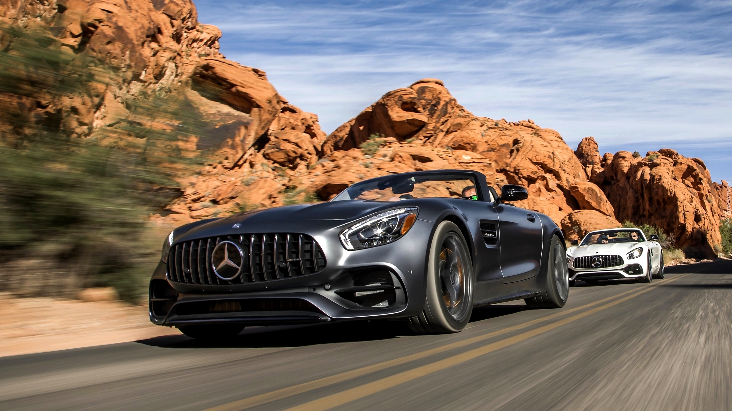 Edytor tapety: Dwa Mercedesy AMG GT Roadster na drodze