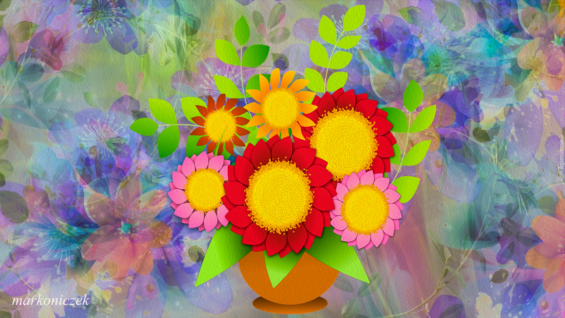 Edytor tapety: Kwiaty w wazonie na kolorowym tle