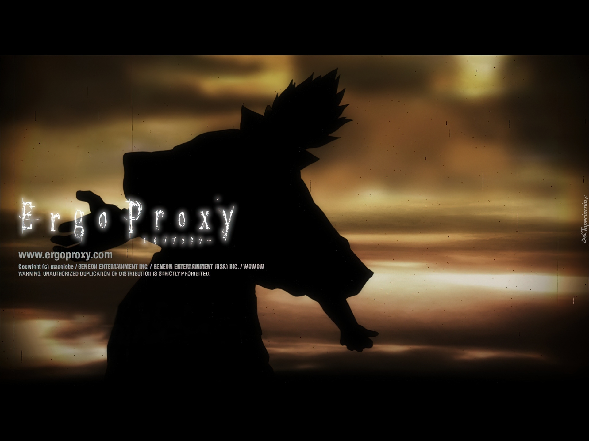 Edytor tapety: Ergo Proxy, napisy, postać, ciemno, blask