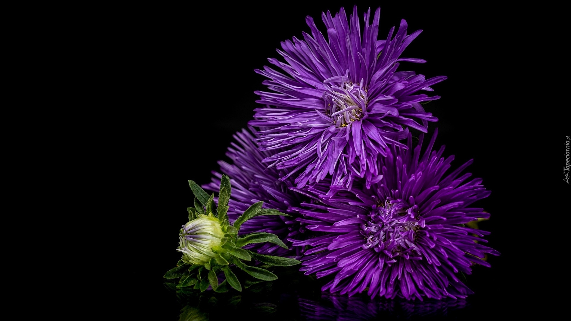 Edytor tapety: Fioletowe astry na ciemnym tle