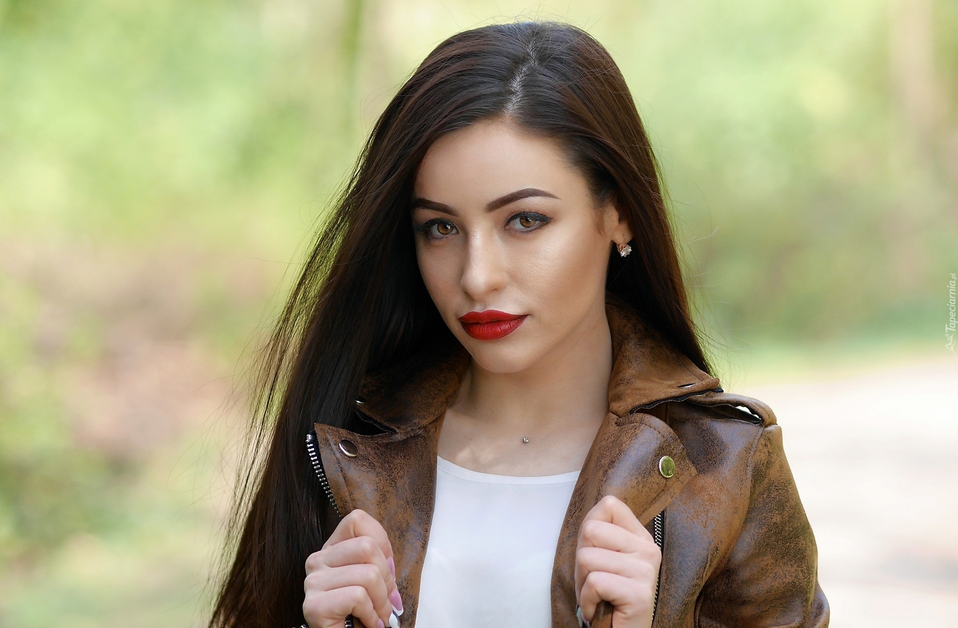 Edytor tapety: Dziewczyna w skórzanej kurtce