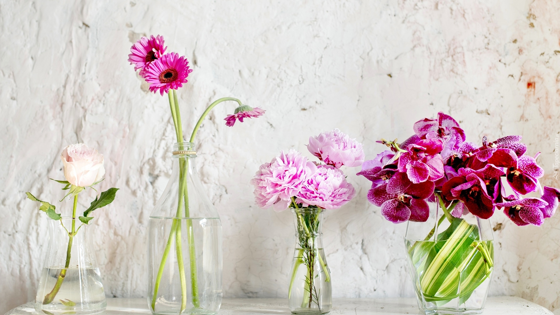 Edytor tapety: Kwiaty w szklanych wazonikach