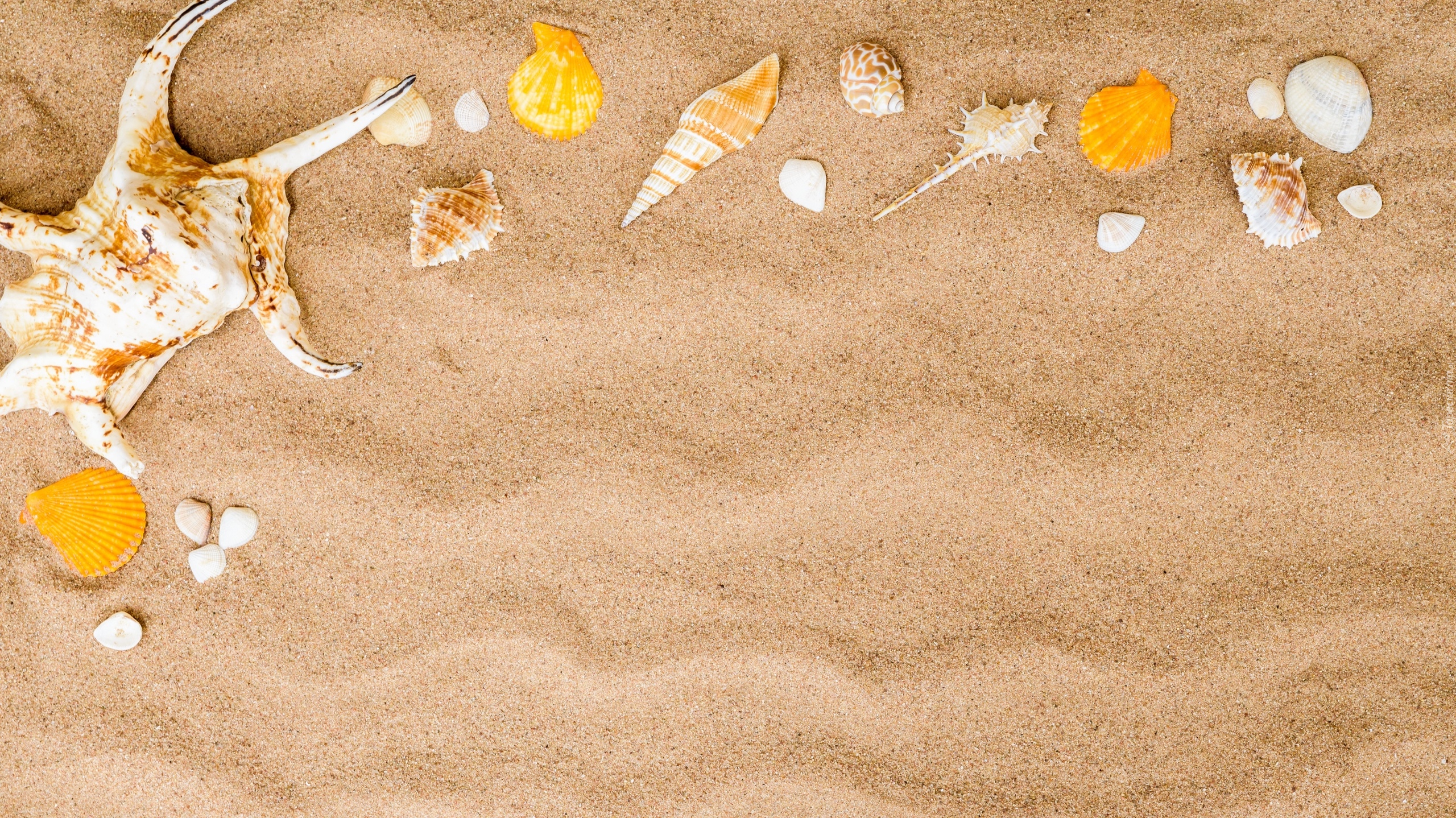 Edytor tapety: Różne rodzaje muszelek na piasku