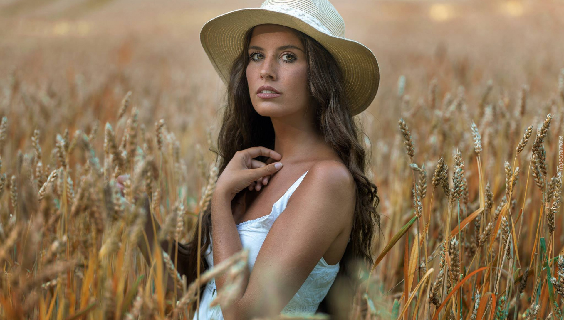 Edytor tapety: Dziewczyna w kapeluszu pośród kłosów zboża