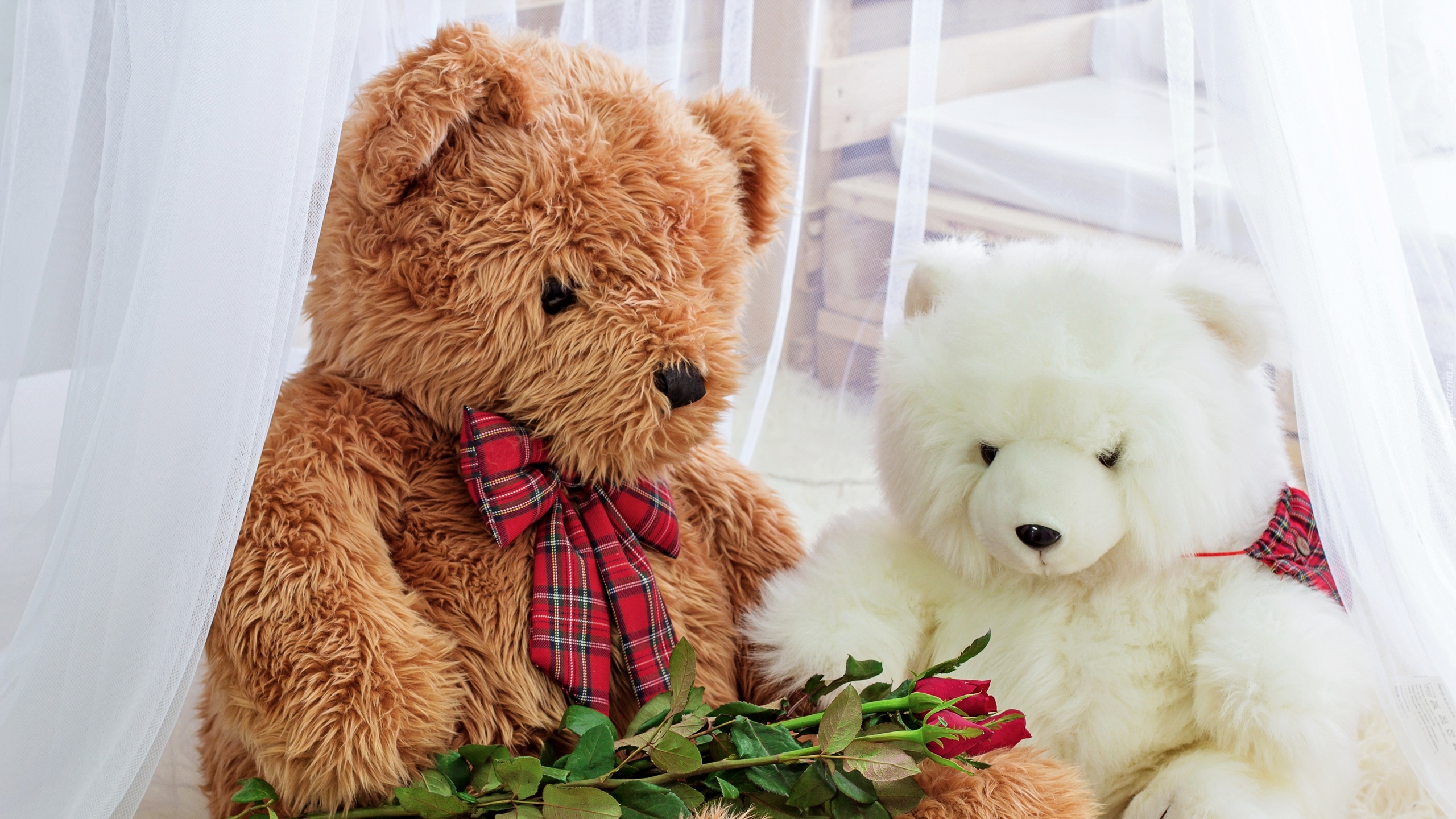 Edytor tapety: Dwa misie z różami