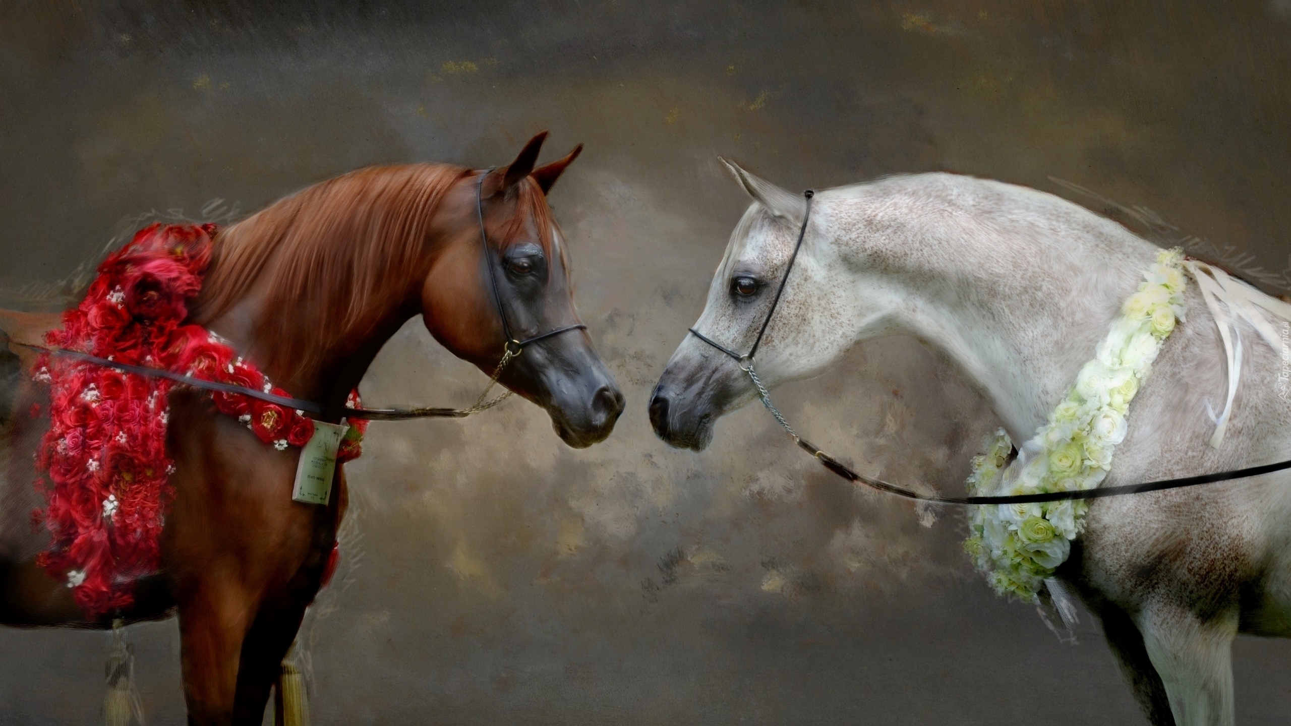 Edytor tapety: Dwa konie czystej krwi arabskiej w malarstwie