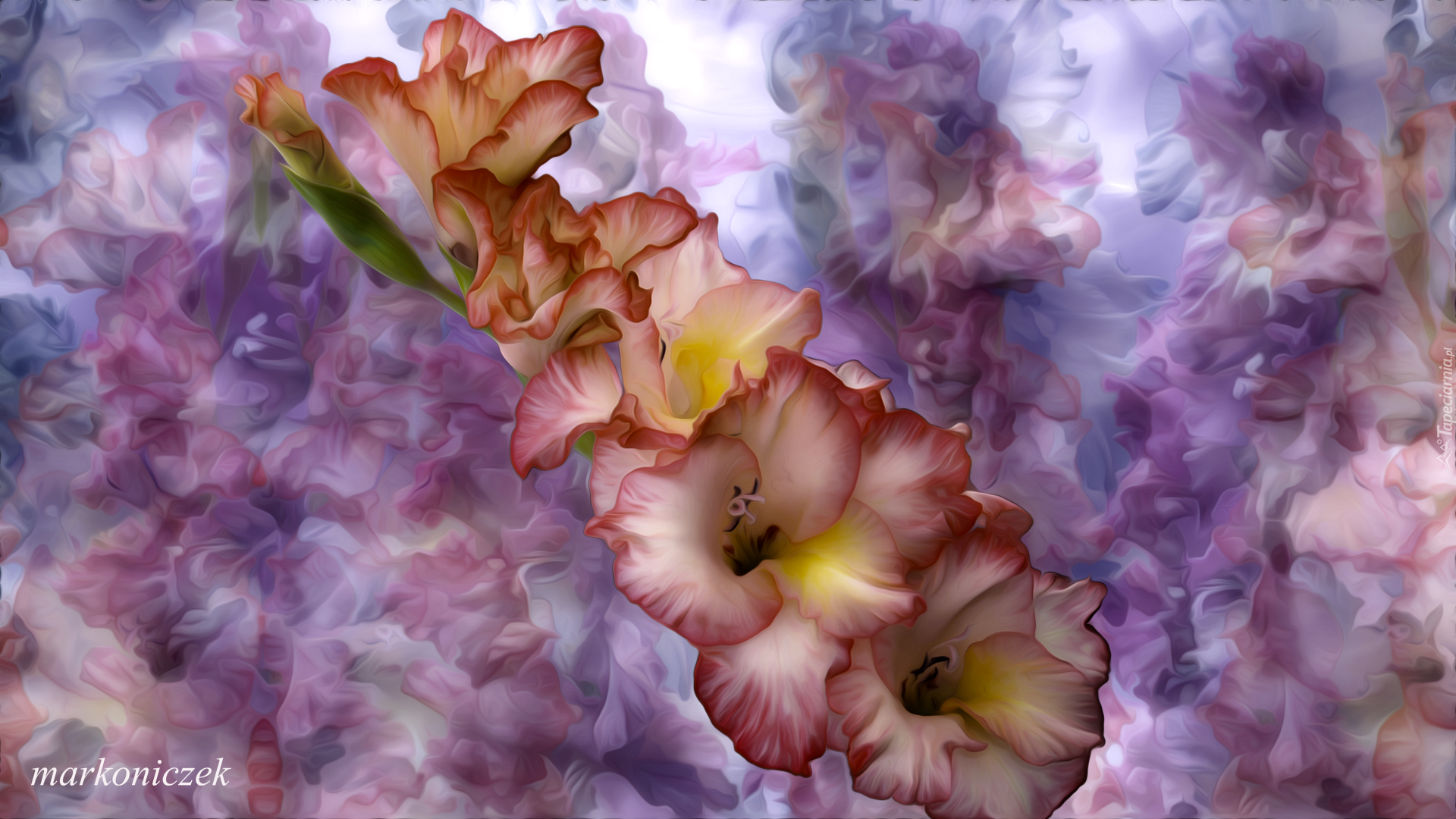 Edytor tapety: Mieczyk na kolorowym tle