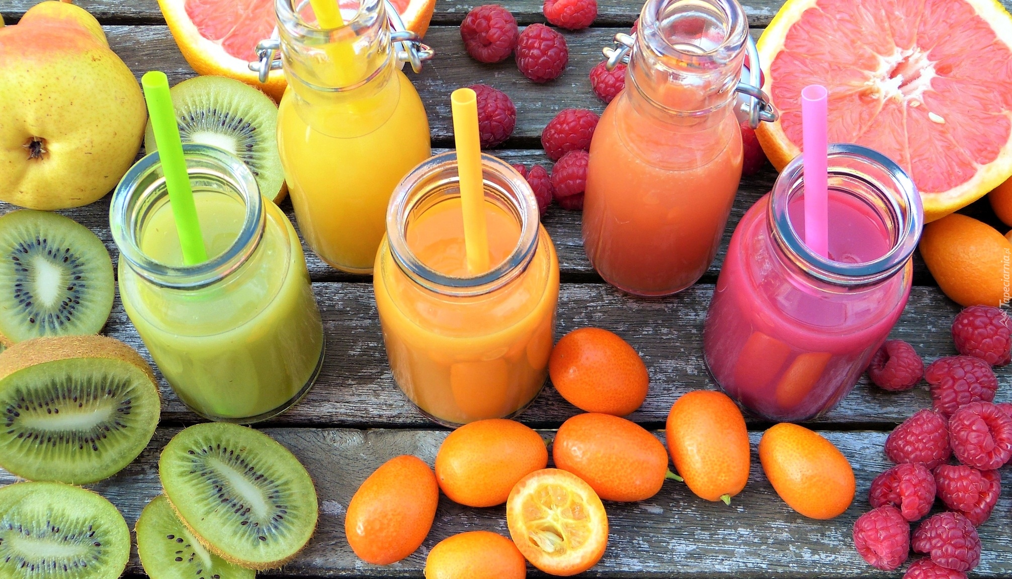 Edytor tapety: Owocowe soki w słoikach