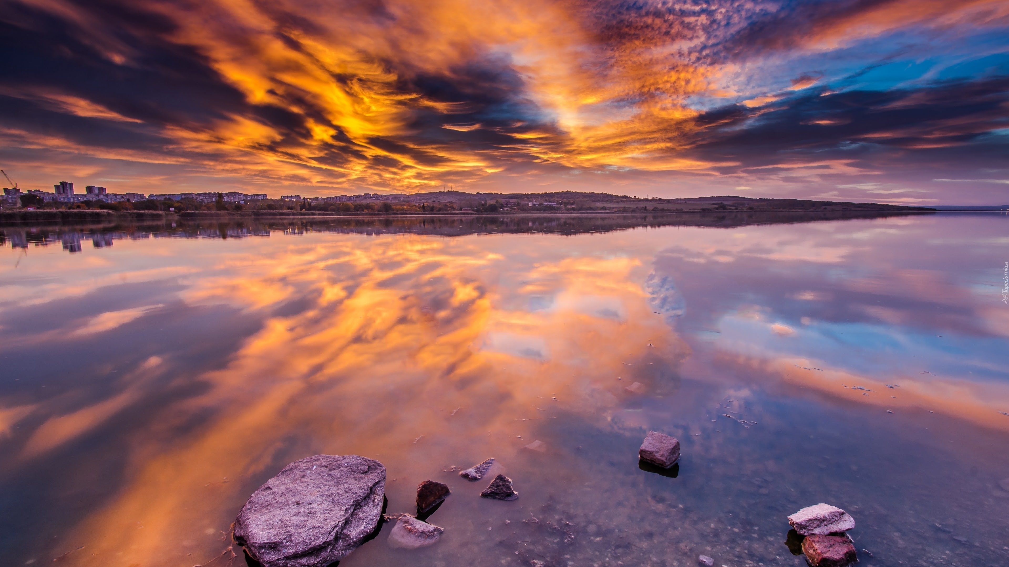 Edytor tapety: Odbicie w jeziorze chmur o zachodzie słońca