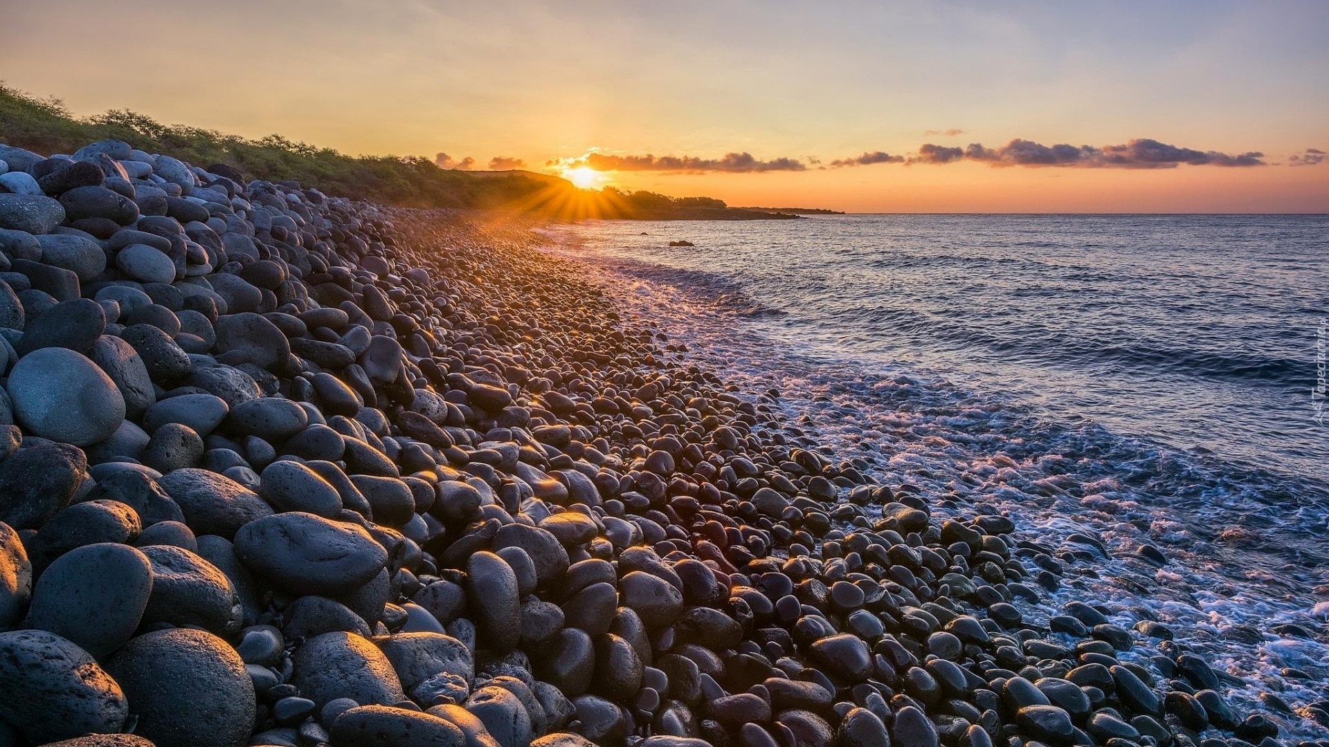 Edytor tapety: Kamienie na brzegu morza w promieniach słońca