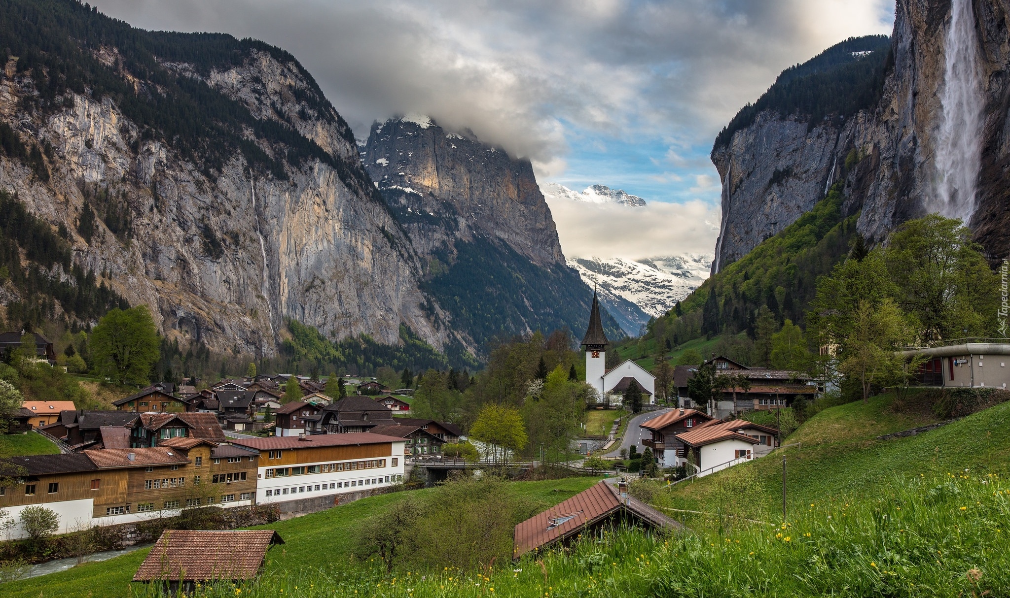 Edytor tapety: Zabudowania w dolinie Lauterbrunnental w Szwajcarii