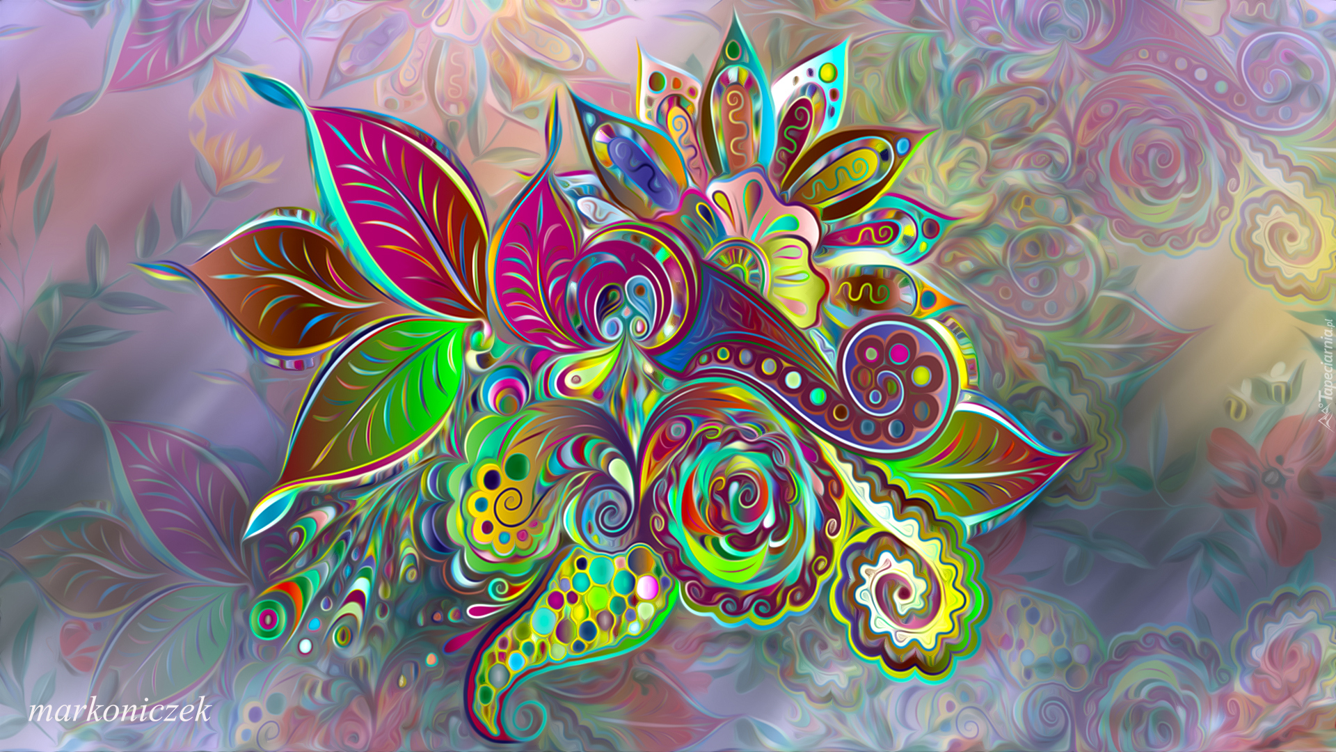 Edytor tapety: Kolorowe listki i kwiatki