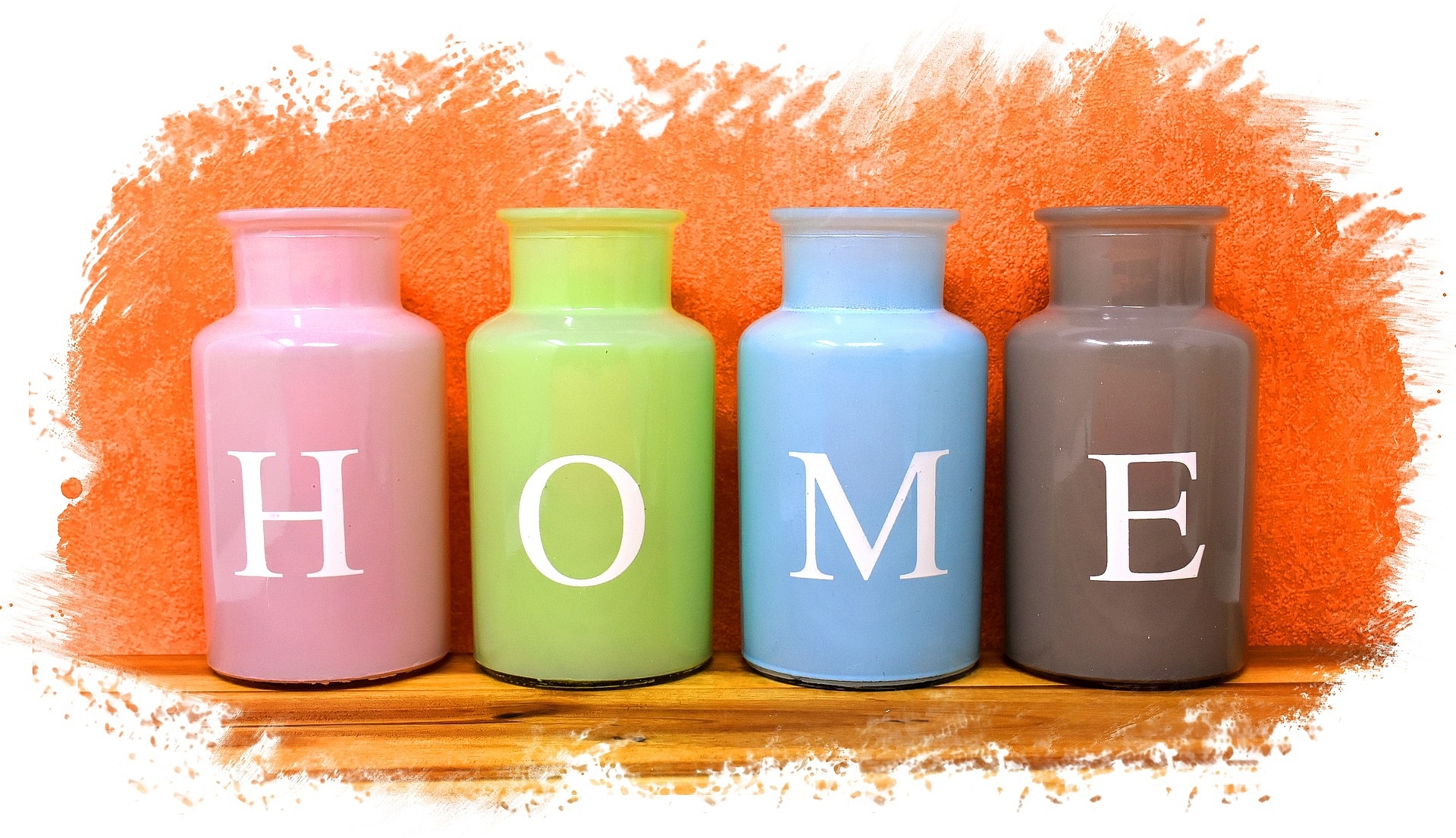 Edytor tapety: Kolorowe wazoniki z napisem Home