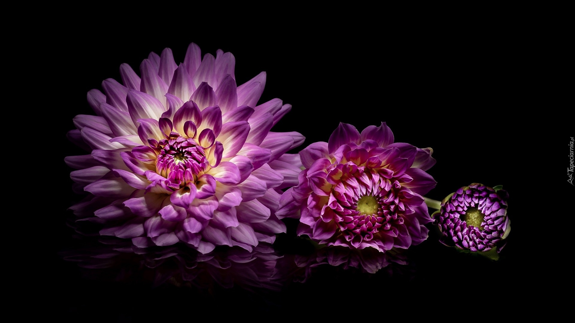 Edytor tapety: Dalie w odbiciu na czarnym tle