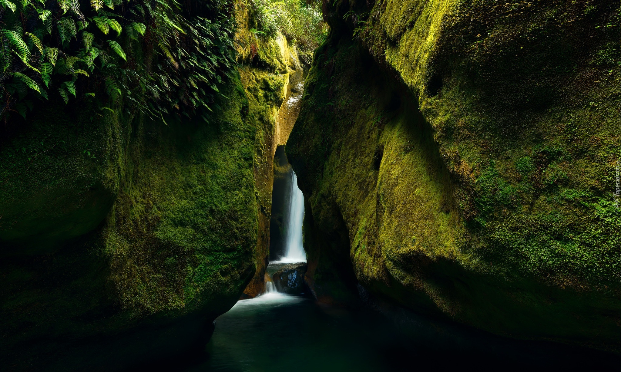 Edytor tapety: Wodospad Upper Chasm Falls między skałami