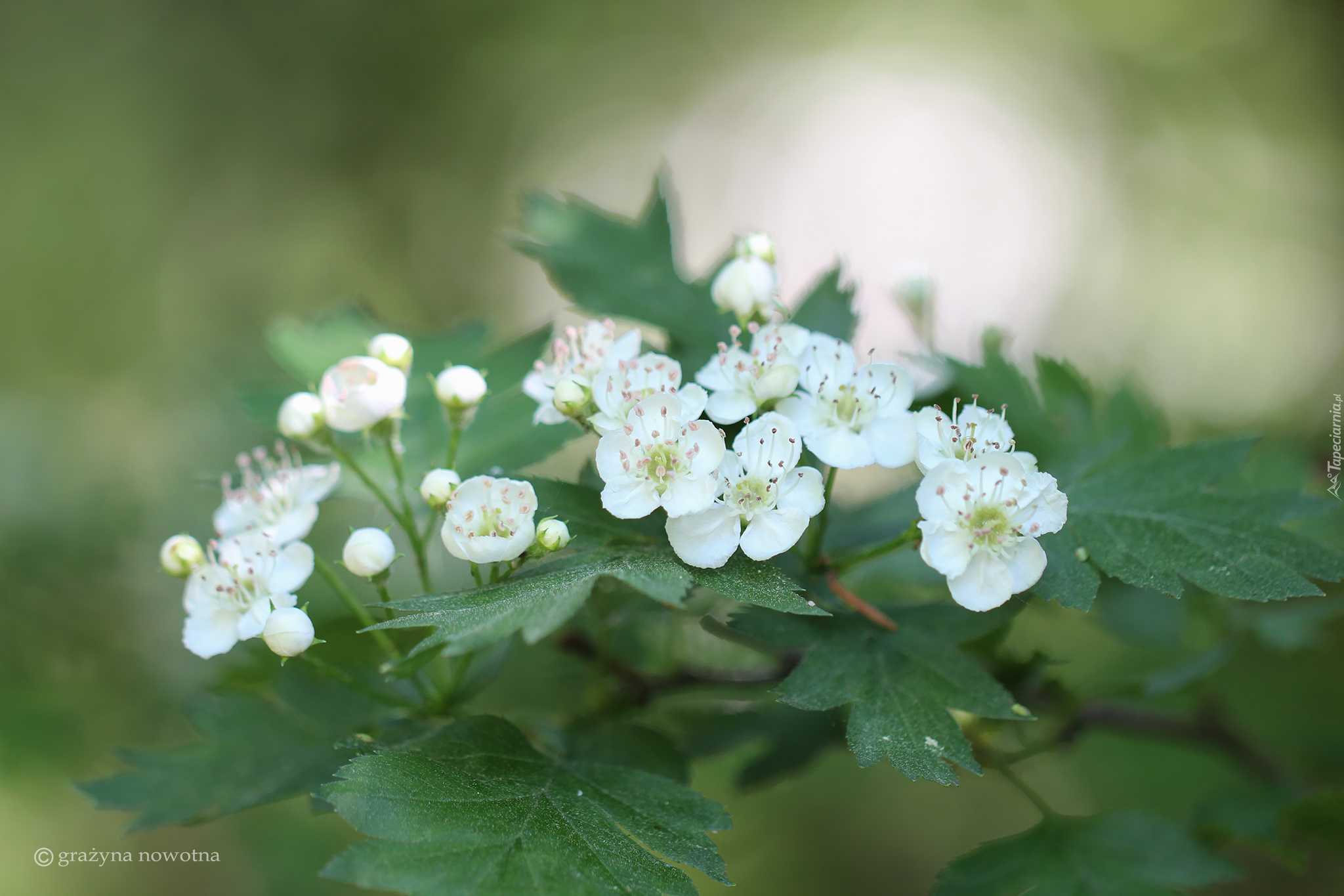 Edytor tapety: Gałązki krzewu z białymi kwiatkami