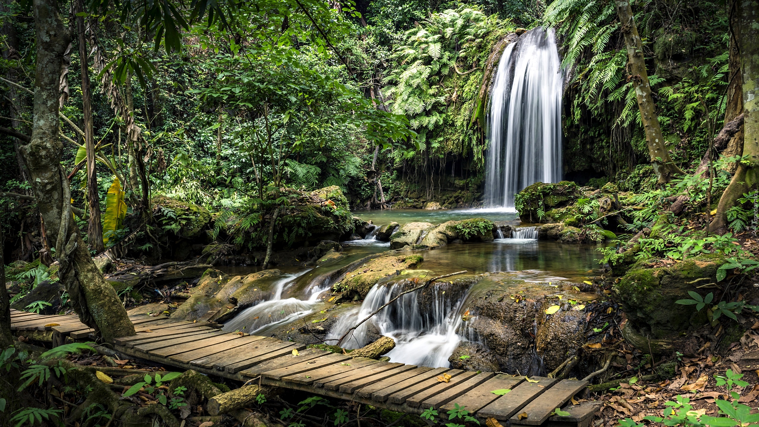 Edytor tapety: Wodospad pośród paproci