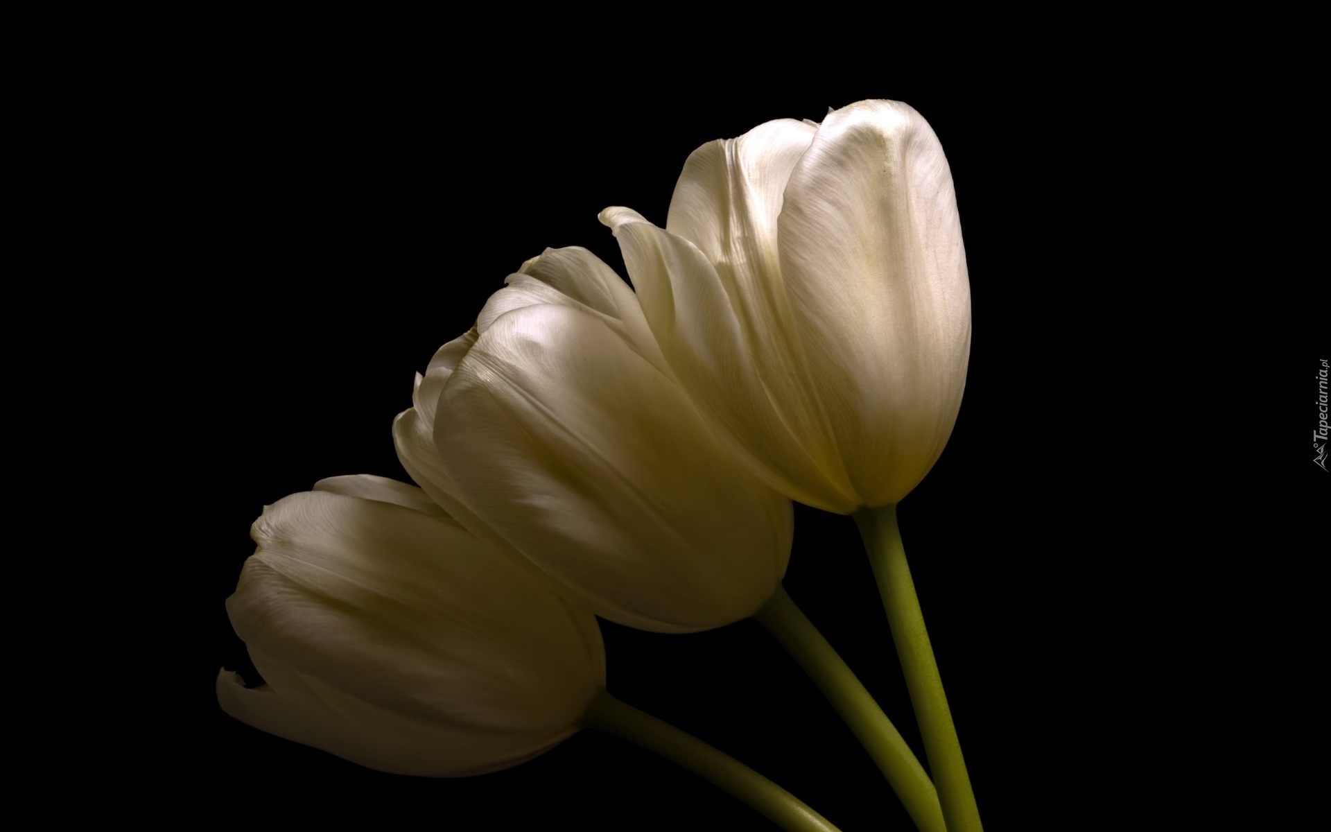 Edytor tapety: Białe tulipany na czarnym tle