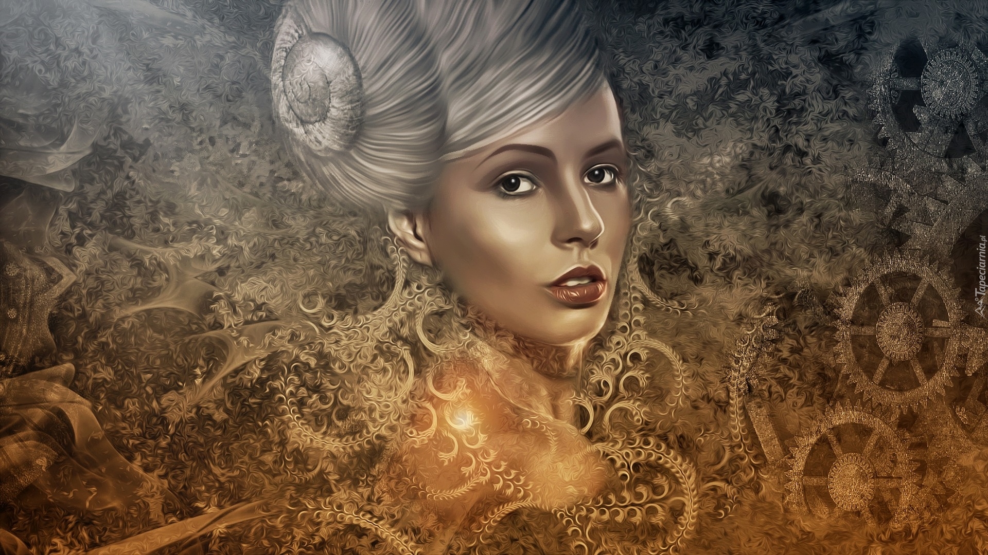 Edytor tapety: Kobieta z kokiem w kształcie muszli