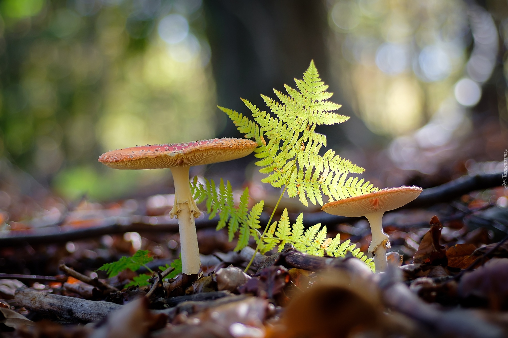 Edytor tapety: Paprotka obok muchomorów
