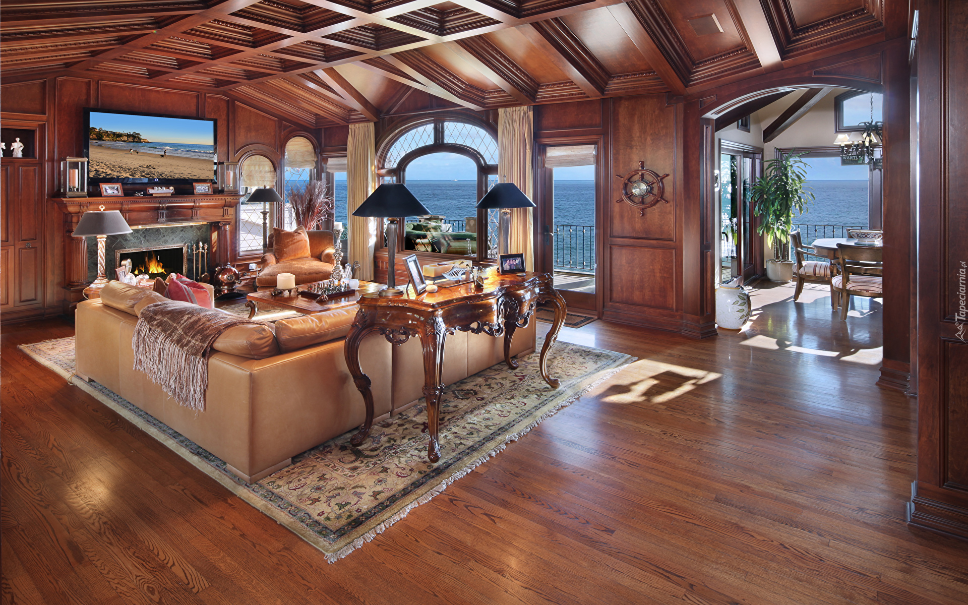 Edytor tapety: Stylowy salon z widokiem na morze