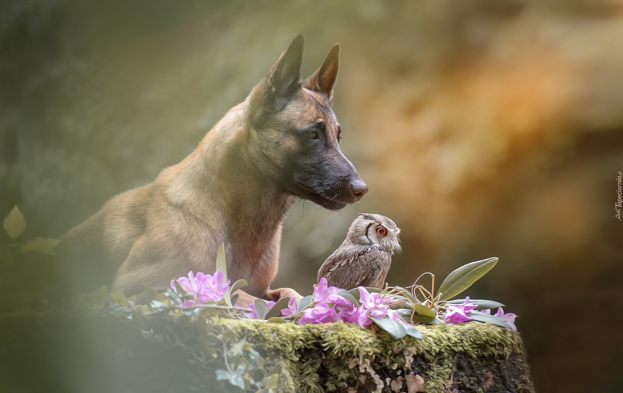 Edytor tapety: Owczarek belgijski Malinois z sową