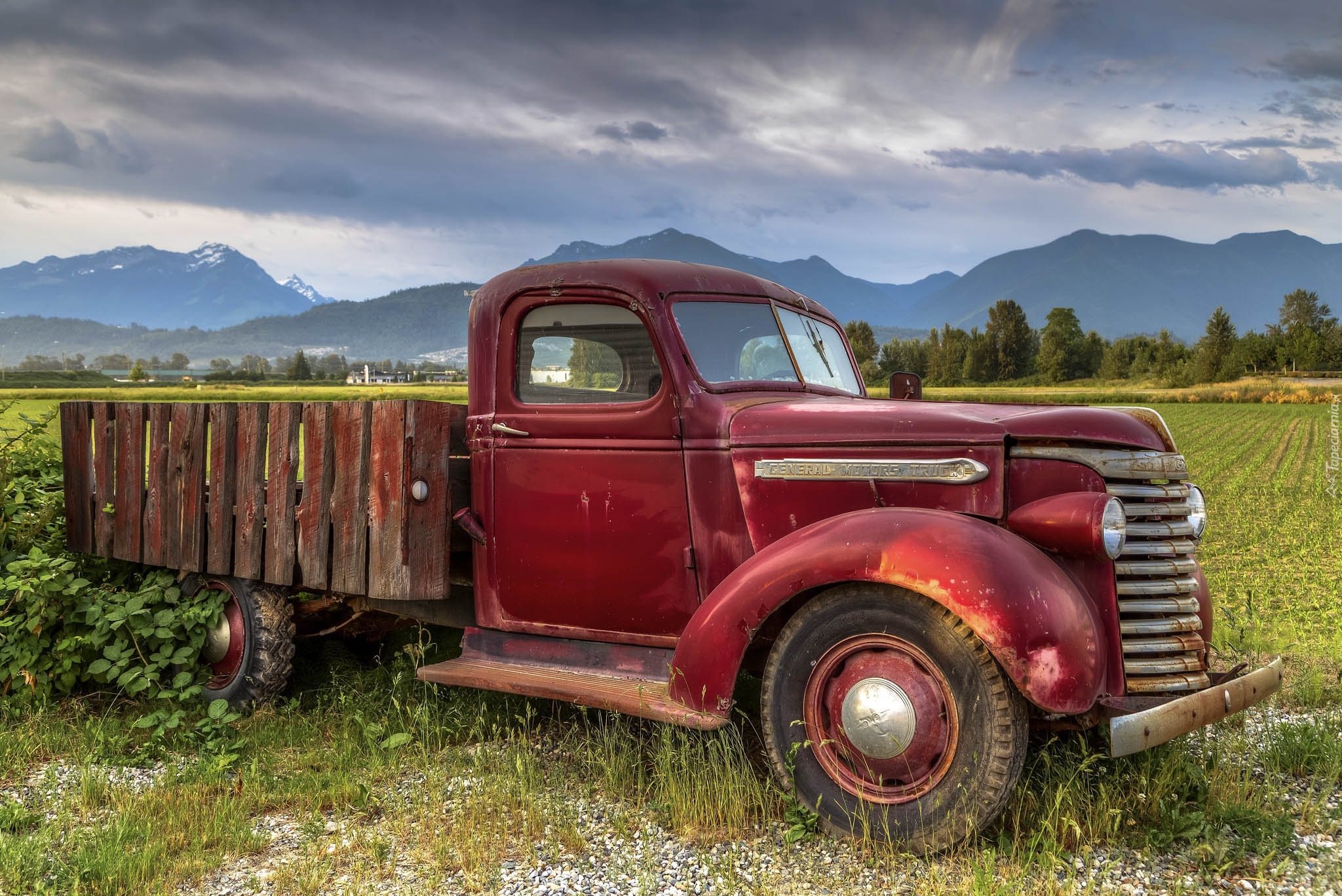 Edytor tapety: Czerwony stary samochód