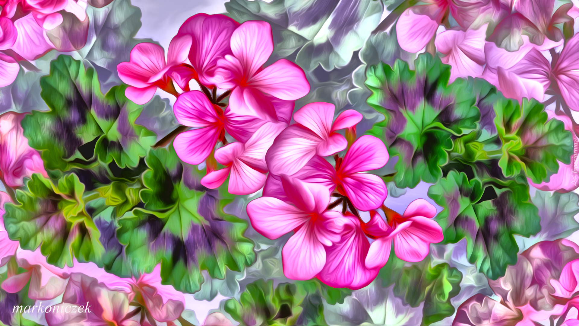 Edytor tapety: Pelargonie na listkach w grafice