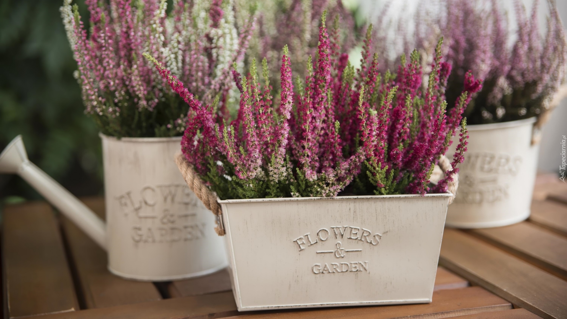 Edytor tapety: Ozdobne doniczki z wrzosem