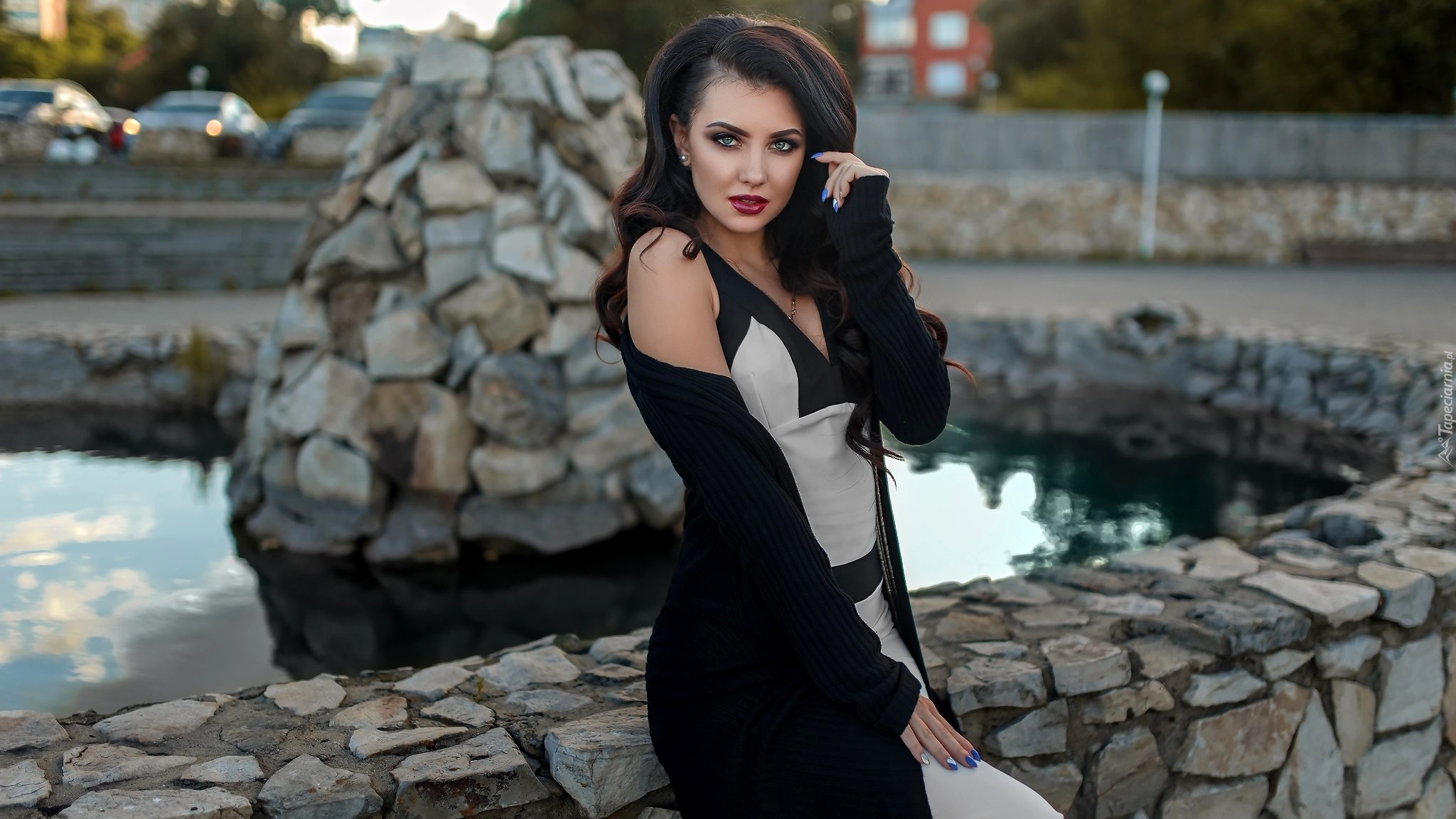 Edytor tapety: Kobieta w czarno-białej sukience