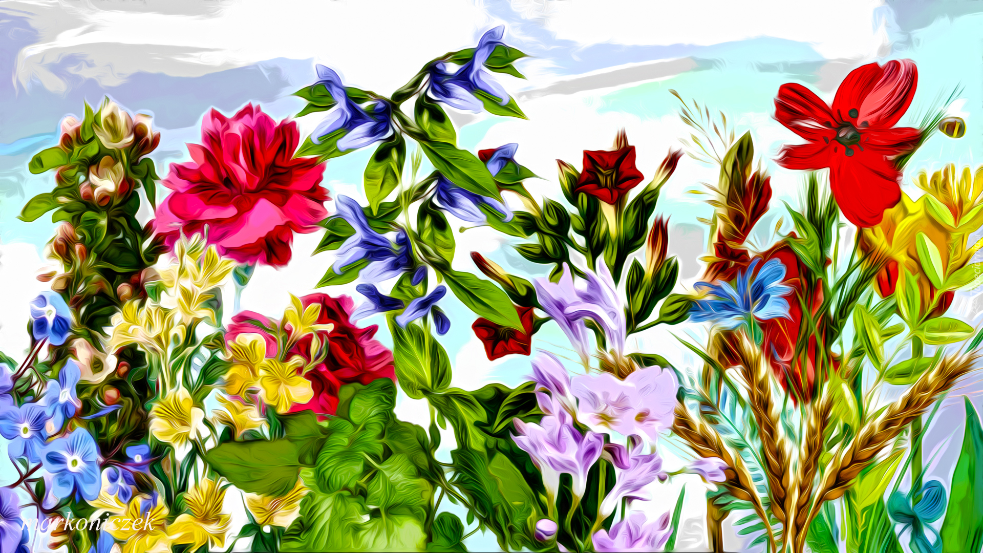 Edytor tapety: Grafika z kwiatami i kłosami zbóż