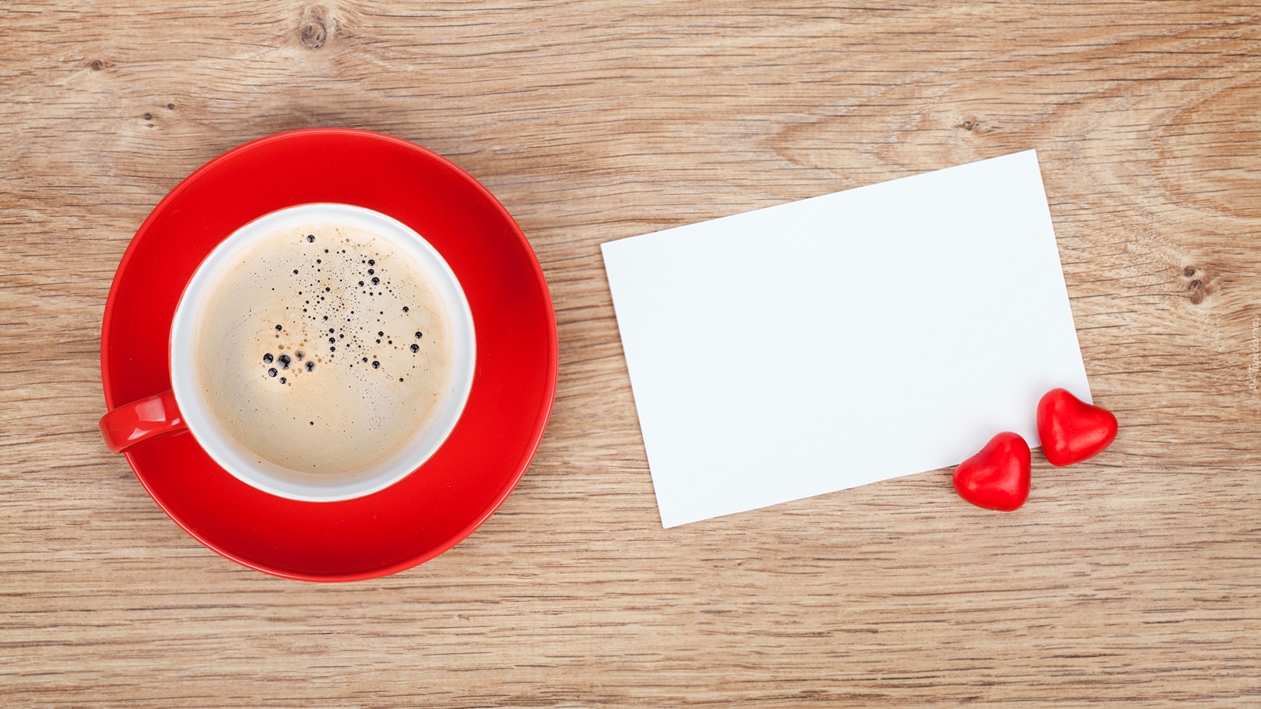 Edytor tapety: Filiżanka kawy obok białej kartki i serduszek