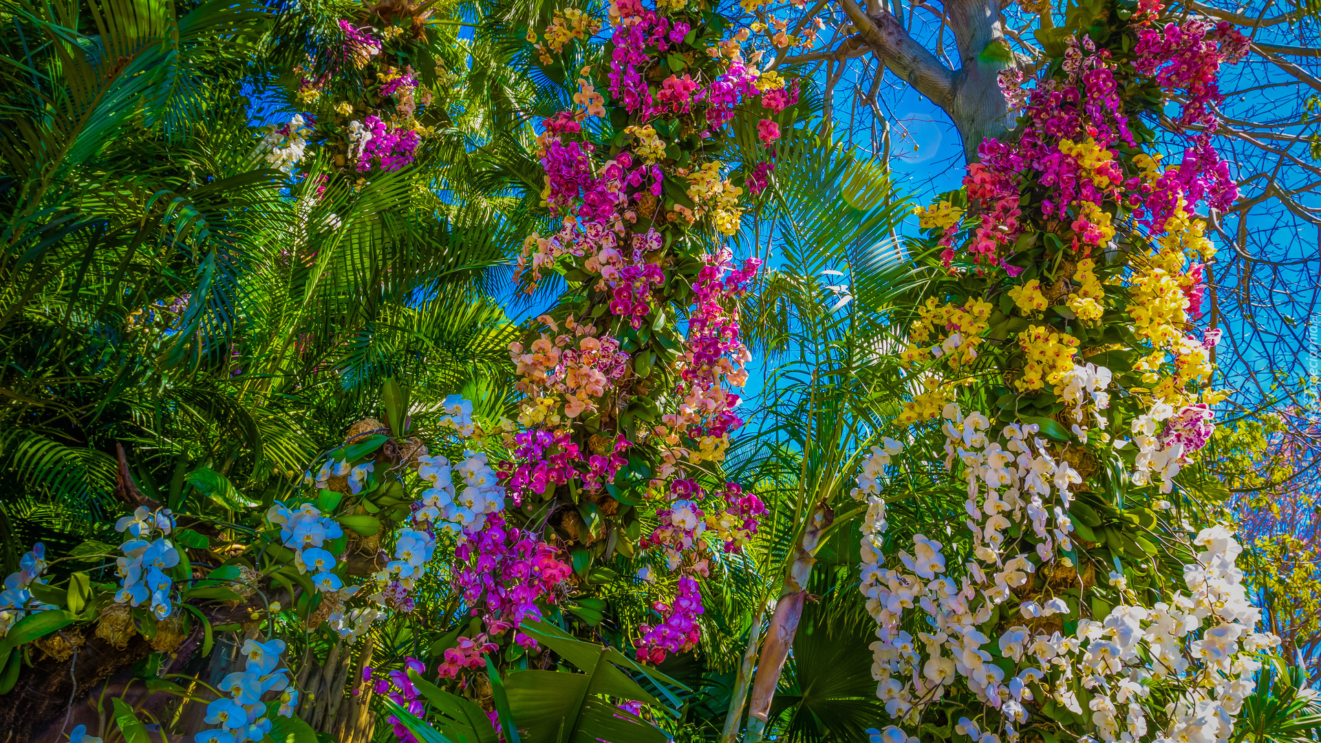 Edytor tapety: Kolorowe storczyki oplatające drzewa